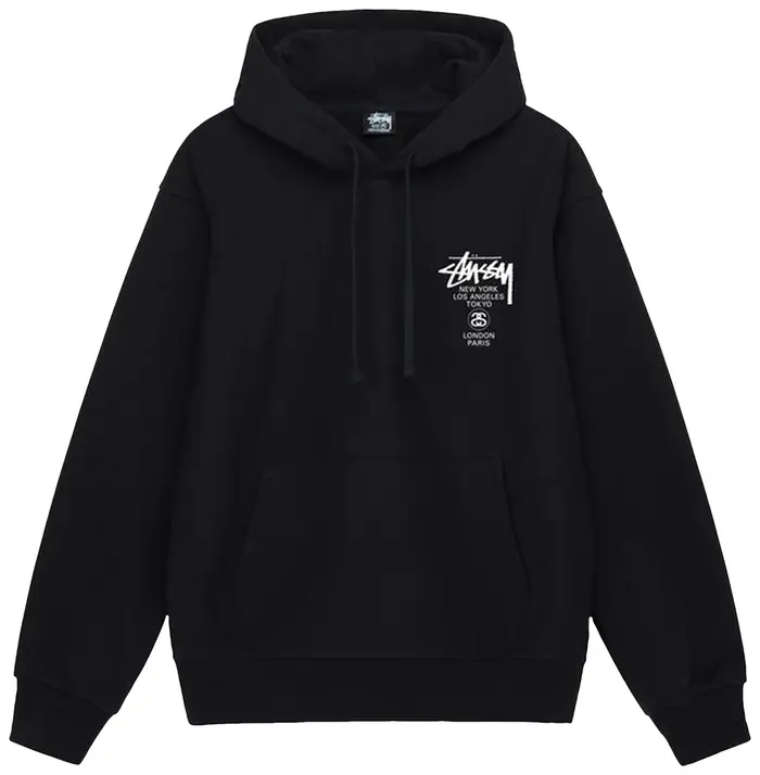 Product specifications: • Material: 90% cotton, 10% polyester • Soft, stretchy and breathable fabric • Loose unisex cut for everyday use • Ribbed cuffs and hem, kangaroo pocket • Machine and hand wash suitable • Color and shape retention • Available in several sizes (S–XXXL) • Casual streetwear style – ideal for every seasonCdg Black Market X Stussy Hoodie