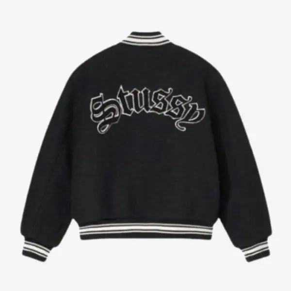 Stussy Black Aesthetic College Jacket – Bold, Minimal, and Timeless