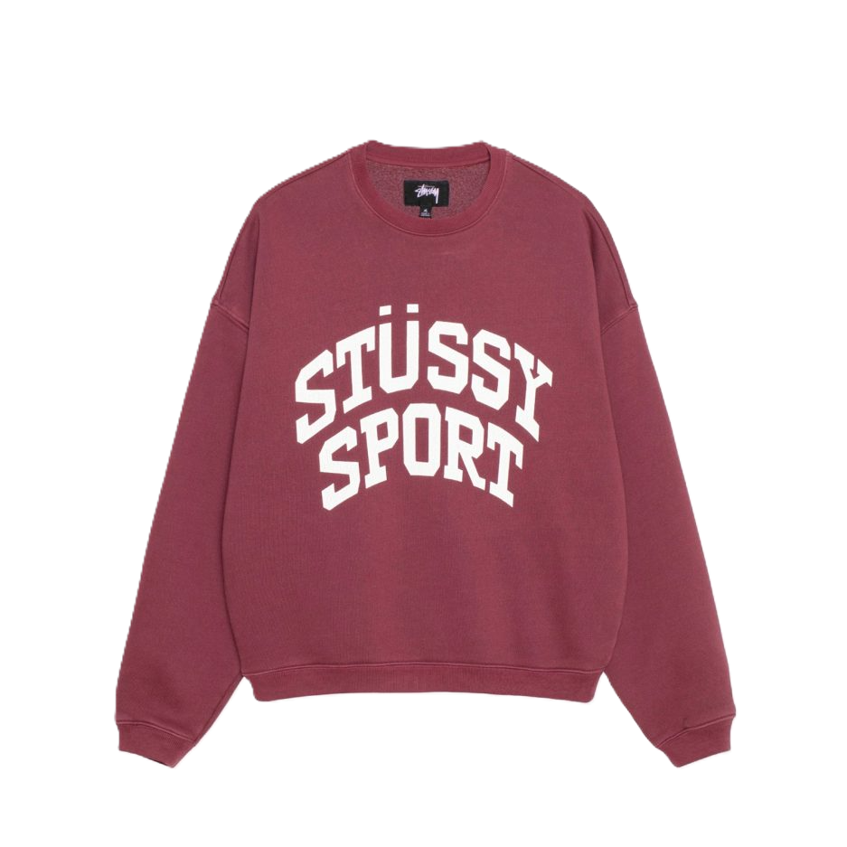 stussy big crackle sport crew in burgundy.
